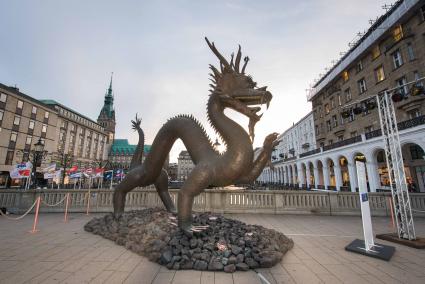 Partnerstadt Hamburgs ist. Auch der aus Kupfer gefertigte Drache der