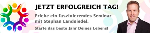 Die Mehrheit der Menschheit ist unzufrieden mit dem eigenen Leben oder könnte es sich zumindest besser vorstellen. Klagen, Depressionen und Lebenskrisen sind geläufige Ausdrücke im Alltag. Wörter wie "Burnout" und die bekannte "Mid-Life-Crises" haben in den letzten Jahren nicht nur an Popularität gewonnen, sondern sind sogar öfter zu hören als wir uns eigentlich wünschen. Genau aus diesem Grund hat Stephan Landsiedel den "JETZT ERFOLGREICH TAG!" ins Leben gerufen und tourt schon seit vergangenem Jahr 2013 durch ganz Deutschland. Das Tagesseminar beschäftigt sich damit, wie man wieder zu mehr Erfolg gelangt und das eigene Potential entdeckt und bestmöglich daraus schöpft. Weitere Inhalte des "JETZT ERFOLGREICH TAGES!" sind: Ziele, Motivation, Kommunikation und Veränderung von Glaubenssätzen.