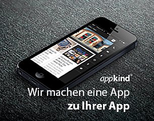 Die appkind GmbH bietet mit Ihrer "App zum Mieten" ein neuartiges und erschwingliches Dienstleistungsangebot vor allem für kleine und mittlere Unternehmen, Blogger und Vereine an. Appkind baut dabei auf eine voll funktionsfähige einheitliche Basisstruktur, die vom Kunden individuelle angepasst und mit Zusatzfunktionen ausgestattet werden kann. Um beste Qualität zu einem günstigen Preis anbieten zu können, verzichtet man auf das Baukastenprinzip anderer Anbieter und designte das Produkt als Full-Service Dienstleistung, bei der das Unternehmen auch nach Erstellung der App weiter betreut wird.