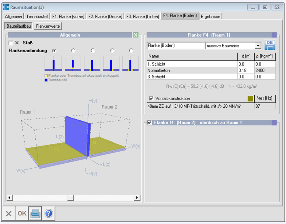 - Manuelle Editierbarkeit des Raumvolumens (einschaliges Trennbauteil).