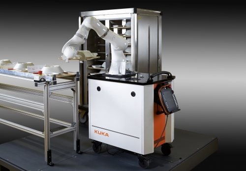 Steigende Anforderungen im Pflegebetrieb stellen neue Herausforderungen dar. Die Personalbelastung ist in dieser Branche hoch und die vorhandenen Mitarbeiter müssen dementsprechend optimal eingesetzt werden, damit ein patienten- und serviceorientierter Pflegebetrieb gewährleistet werden kann. Die Konzeptstudie ?LBR iiwa Springer? als Küchenassistent wird in Zusammenarbeit mit der OrgaCard Siemantel & Alt GmbH entwickelt. Der sensitive Helfer erledigt selbstständig und zuverlässig unergonomische und auf Dauer gesundheitsschädigende Arbeiten am Portionierband und entlastet hiermit das eigentliche Personal. ?Durch die enge Zusammenarbeit zwischen OrgaCard und KUKA kann der Erfahrungsschatz in der Krankenhausspeisenversorgung und ?logistik, die große Kundennähe und Servicetiefe mit dem Know How in der Industrierobotik und der hohen Verfügbarkeit des Anlagenbaus vereint werden?, sagt Henning Borkeloh, Bereichsleiter Advanced Technology Solutions bei KUKA Systems GmbH.