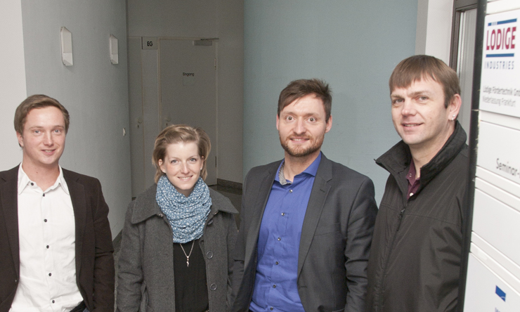 Der Einzug ist geschafft. Das Lödige-Team der Niederlassung Frankfurt freut sich, jetzt vom Standort Rödermark aus aktiv zu werden. Personen von links nach rechts: Stieven Dumke (Vertrieb- und Abwicklung), Katharina Kraus (Sekretariat), Marcel Schilling (Niederlassungsleiter Frankfurt) und Torsten Nolte (Service) - Foto: Lödige