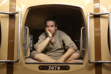 japanische Mietfamilie und eine winzige Schlafbox. Die wahre