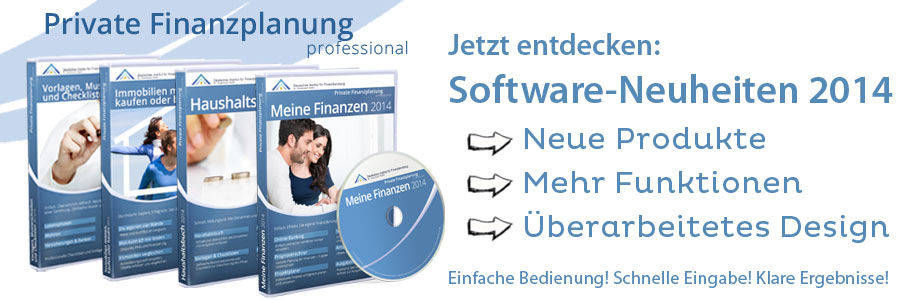 Im Januar 2014 sind die neuen Programme zur professionellen Finanzplanung ?Meine Finanzen 2014?, ?Haushaltsbuch 2014? und ?Immobilien mieten, kaufen oder bauen 2014? erschienen.