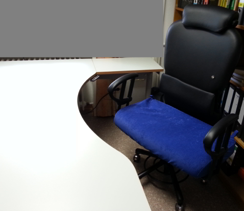 "Ergonomischer Büroarbeitsplatz bei Lymphödemen der Beine (Elefantiasis) und extremem Übergewicht"