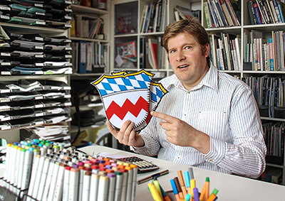 "So wie jeder Landstrich ein Autokennzeichen hat, verfügt heute jede Kommune über ihr Wappen", erklärt Stefan Schiessl von Exploredesign, "die Bereitschaft, sich mit dem eigenen Wappen zu identifizieren ist sehr groß." So führen beinahe alle befragten Kommunen und Landkreise ein Wappen - Ausnahmen bilden Schwebheim, Stadlern und Kottgeisering, die derzeit ohne offizielles Wappen sind.