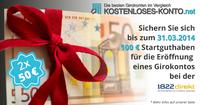 50+50-Aktion bis zum 31. März 2014 verlängert: 100 Euro Startguthaben für die Eröffnung des 1822direkt Girokontos über Kostenloses-konto.net