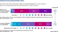 Der im Rahmen dieser Studie entwickelte Industrie-Innovationsindex stellt das Verhältnis zwischen innovativ-wahrgenommenen Unternehmen und nicht innovativ-wahrgenommenen Unternehmen dar: Ein Indexwert größer 100 bedeutet eine positiv wahrgenommene Innovationsfähigkeit der Industriebranche.