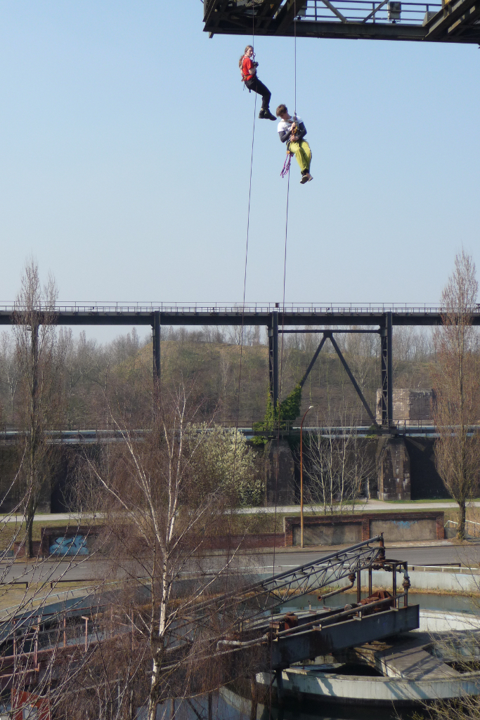 Danach tauchen wir dann ganz tief in die Welt aus rostigem Stahl und Eisen ein und machen eine Expedition Stahl durch den Hochseilgarten. In bis zu 50 Metern Höhe können wir unser erlerntes Wissen einsetzen und den Ausblick über das halbe Ruhrgebiet vom Gipfel des Hochofens genießen. Mit einem exklusiven Highlight, dem Abseilen vom Krokodil, einer riesigen freischwebende Stahlkonstruktion beenden wir unseren Tag im Landschaftspark.