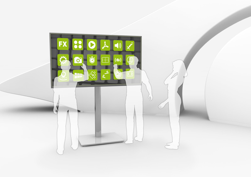 Die intuitive Bedienung ohne Tasten, allein mit den Fingern, hat die Mobilfunk-Branche revolutioniert. AppStores bekannter Hersteller bieten mittlerweile eine Fülle an Apps für mobile Geräte mit handlichen Display-Formaten. Auch in der Digital Signage Branche erfahren große Displays mit MultiTouch-Funktionalität steigende Beliebtheit. Allerdings mangelt es bisher an entsprechenden Apps, um die Möglichkeiten solcher großen Systeme im professionellen Umfeld zu nutzen.