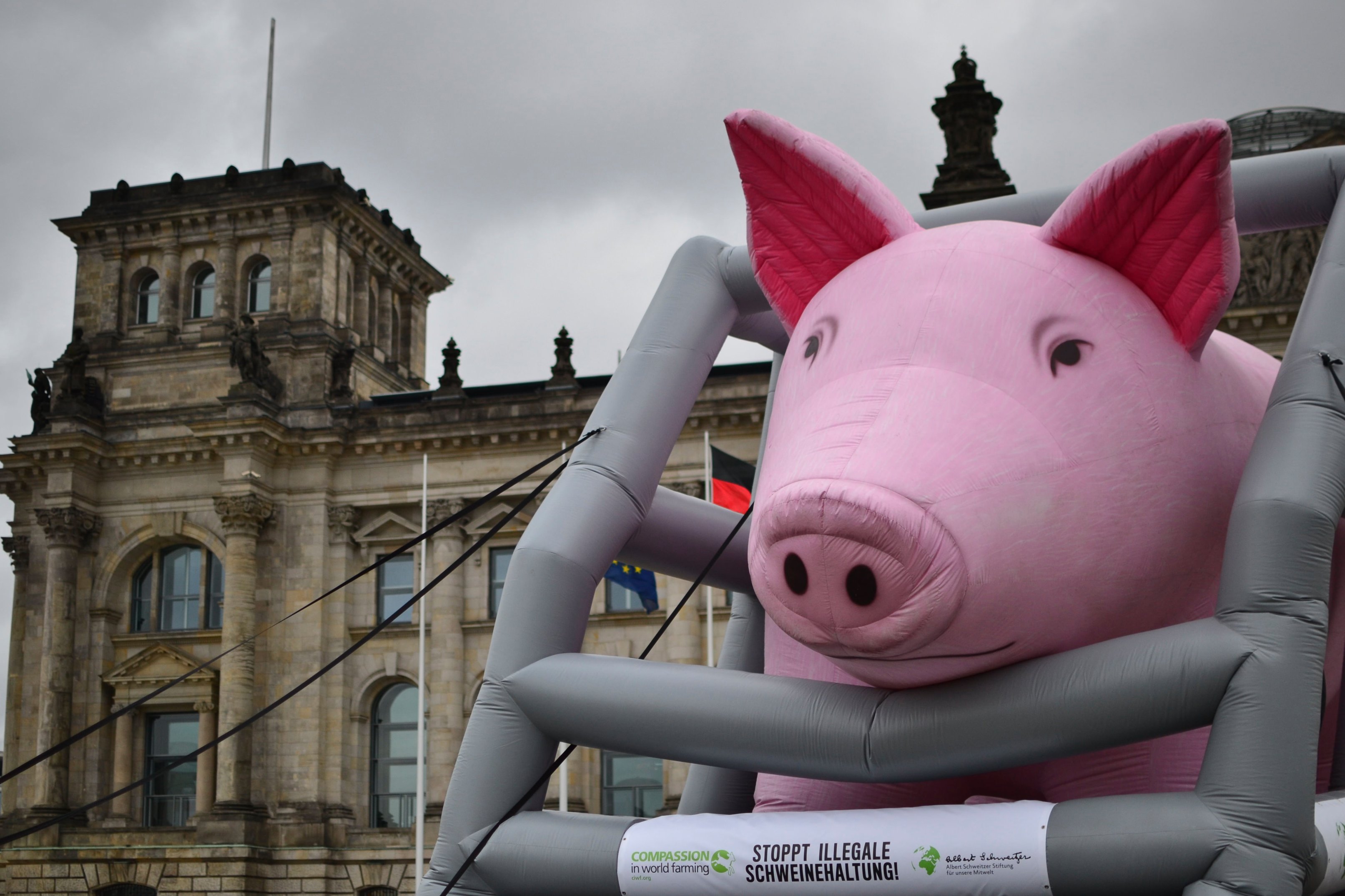 "Hope", ein 200 Kubikmeter großes Schwein, war heute vor dem Reichstagsgebäude, um auf die grausamen und illegalen Bedingungen in der Schweinehaltung aufmerksam zu machen, doch Landwirtschaftsminister Schmidt ließHope im Stich.