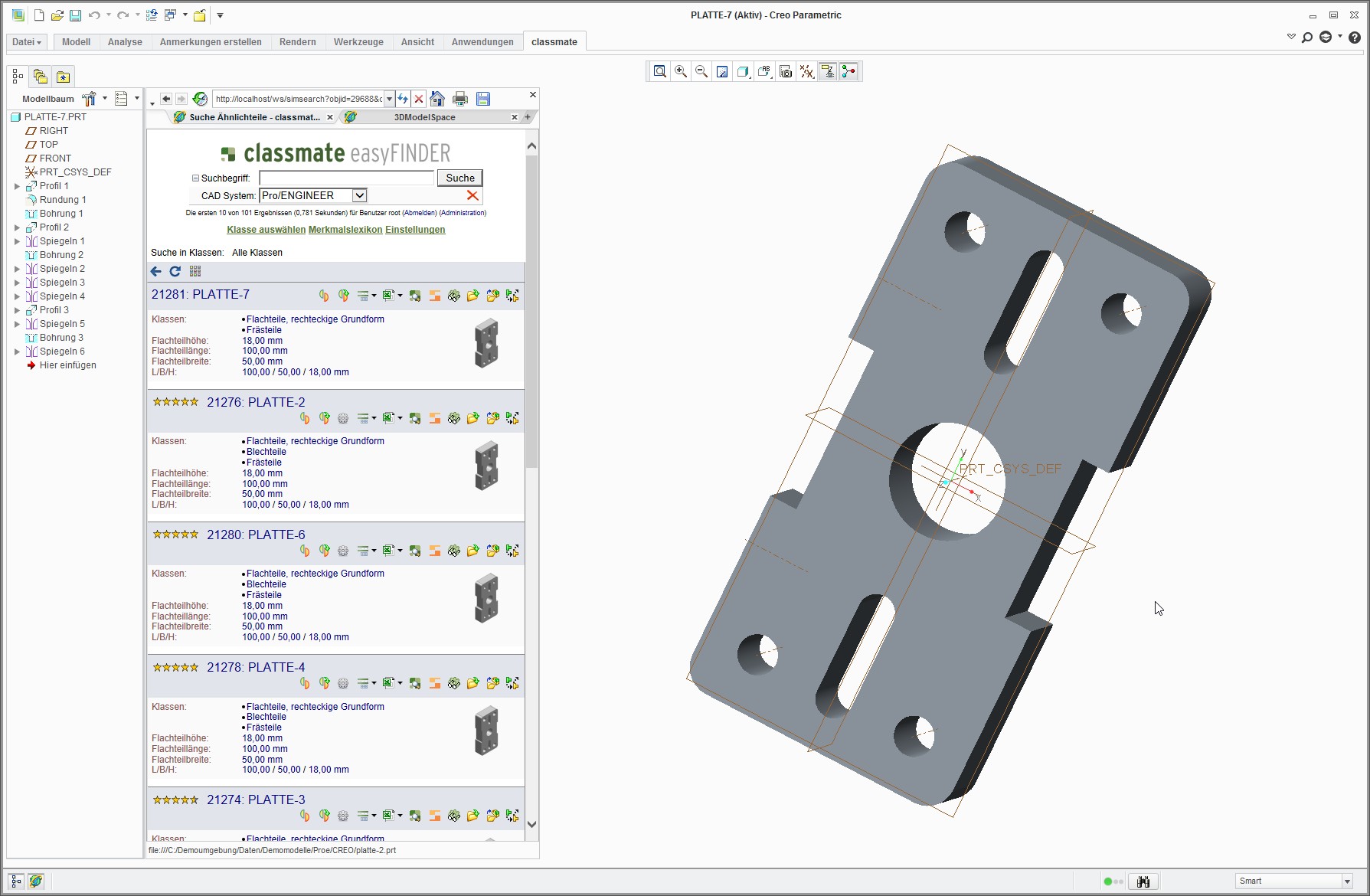 classmate easyFINDER in PTC Creo 2.0 integriert: Komfortable Bauteilsuche in klassifizierten Datenbeständen