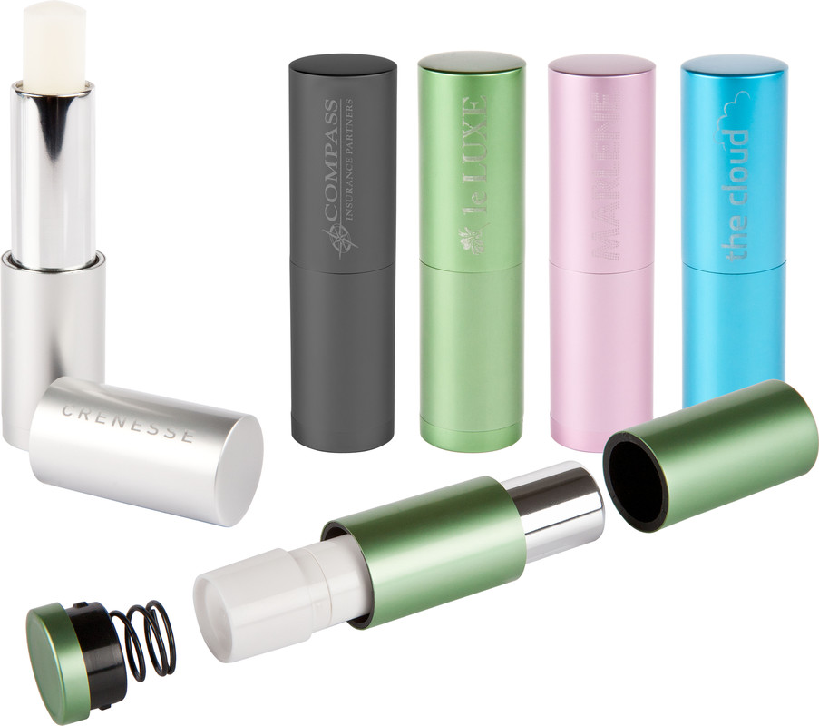 Das Set besteht aus einem Lippenpflegestift mit gravierbarer Metall-Hülle und einem bzw. drei Ersatzpflegestifte(n) zum Nachfüllen. Verpackt sind die hochwertigen und vom Institut Fresenius geprüften Produkte in einer attraktiven Einzelkartonage, die mit einer individuell gestalteten Banderole oder einem Doming versehen werden können.