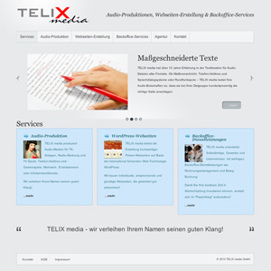 "TELIX media bietet Audio- und Web-Produktionen sowie Backoffice-Services für kleinere und mittlere Unternehmen"