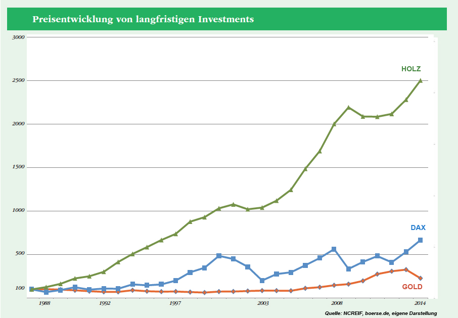 * Der Aufwand für Kursbeobachtungen und teure Kauf- und Verkaufstransaktionen entfällt, weil das Holz erst am Ende des Investitionszeitraums verkauft wird.