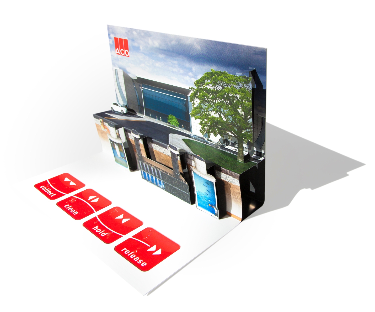 (IINews) - Wien, 01. April 2014. Wie kann ein Unternehmen wie ACO Österreich die Aufmerksamkeit des Kunden auf sich lenken? Ganz einfach: mit einer Pop-Up-Karte von der Qualitätsdruckerei Piacek.