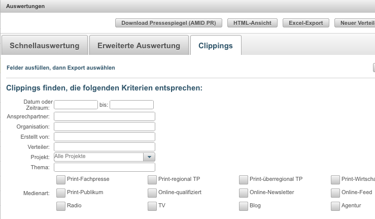 (IINews) - Pressespiegel zusammenstellen ist in vielen PR-Agenturen und Pressestellen nach wie vor ein mühsames und zeitaufwändiges Geschäft. Denn die gescannten Veröffentlichungen sind in der Regel auf Laufwerken abgelegt und müssen manuell zusammengestellt werden. Auch bei der Erstellung der Reports müssen Zusatzinformationen in der Regel manuell ergänzt werden. Deutlich einfacher geht das jetzt mit Hilfe der neuen Pressespiegel-Funktion von der webbasierten PR-Software PressFile und dem Media Asset Management System AMID PR: Im Rahmen der PressFile Clipping-Auswertung können Veröffentlichungen dann nach beliebigen Kriterien wie Zeitraum, Projekt, Thema oder Medienart selektiert werden. Auf Knopfdruck erzeugt AMID PR anschließend eine ZIP-Datei, die alle gesuchten PDFs enthält. Parallel dazu wird über das Clipping Management die Liste mit diesen Veröffentlichungen erstellt - wahlweise als HTML-Report oder als Download für die weitere Verarbeitung in Microsoft Excel, Google Tabellen oder Numbers. Am Ende wird das Ergebnis dann entweder als Datei weitergeleitet oder in Papierform ausgedruckt. Damit deckt PressFile nun den kompletten Prozess der Medienarbeit vom Management der Pressekontakte und -verteiler über den personalisierten Mail-Versand und die Kontakthistorie bis hin zum Clipping Management und Reporting ab.