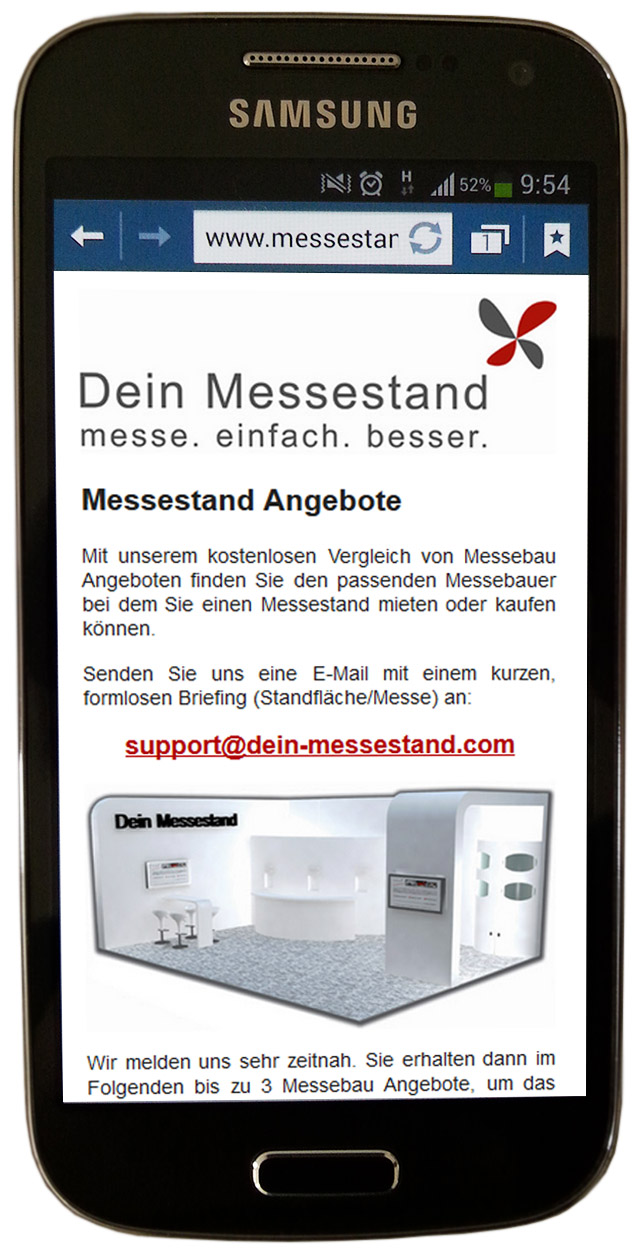(IINews) - (Mynewsdesk) Nutzung mobiler Angebote macht auch im Bereich Messebau nicht haltEs ist nicht weiter verwunderlich, dass gerade im Bereich Messe und Event viele Nutzer mit Smartphones und Tablet PCs arbeiten. Mitarbeiter in Marketing und Vertrieb sind beruflich meist viel unterwegs und suchen Wege die Reisezeiten effektiv zu nutzen.Die Analysen der Besucherzugriffe sprechen eine klare Sprache ? immer mehr User nutzen den Service für Messebauangebote www.dein-messestand.com (http://www.dein-messestand.com) über Smartphones oder Tablet PCs. Neben dem Trend zur mobilen Nutzung verraten die Auswertungen noch etwas anderes ? die mobilen Nutzer weisen eine hohe Absprungrate auf. Ein Resultat das offenbart, dass die Anwender mit dem Angebot nicht ausreichend gut bedient werden, wenn Websites nicht auf mobile Nutzung ausgelegt sind. Bis zum Ende des Jahres soll die Website komplett flexibilisiert sein, dass sowohl mobile als auch die Nutzung am Desktop PC gut möglich ist.Dein Service GmbH geht mit www.messestand.mobi an den Markt Doch so lange sollen die Nutzer des weltweit agierenden Anbieters für Ausschreibungen im Bereich Messebau und Ladenbau nicht warten müssen. Die Dein Service GmbH schickt mit der Website www.messestand.mobi (http://www.messestand.mobi) eine für mobile Geräte optimierte Website ins Rennen. So ist es Messeausstellern künftig auch unterwegs übersichtlich und komfortabel möglich, Angebote für den Messestand einzuholen und ein passendes Messebauunternehmen zu finden.