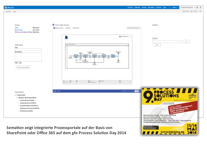 "Semtation präsentiert Prozessportale mit Office 365 auf dem Process Solutions Day 2014"