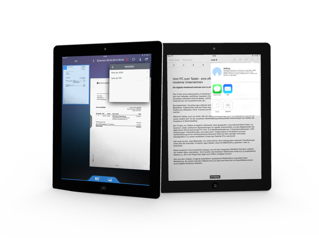 Zahlreiche produktive Apps unterstützen das Öffnen und Speichern von Dateien via WebDAV, z.B. Office Anwendungen, Scanning-Lösungen sowie PDF und Signatur-Apps.