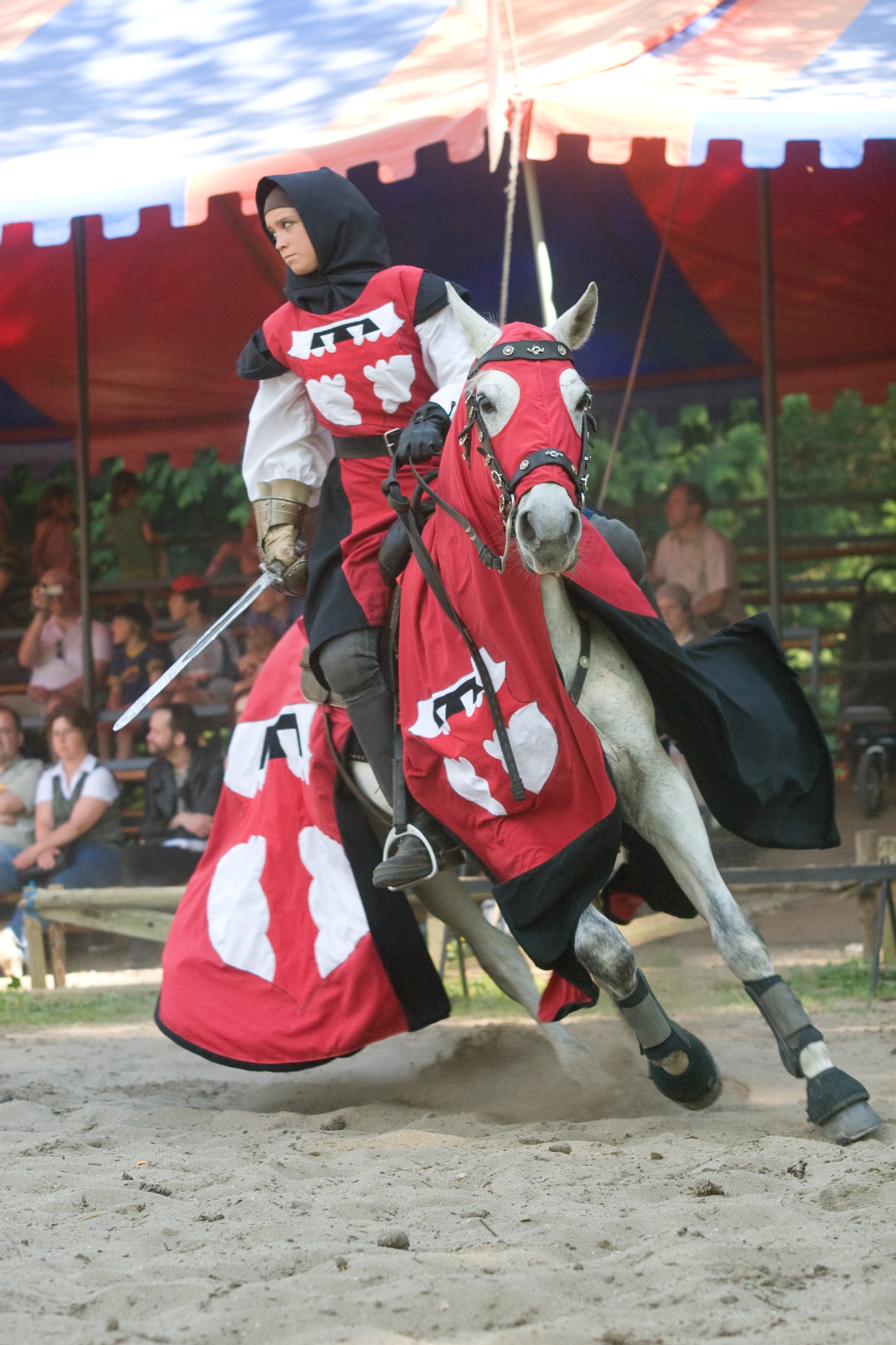 Pressefoto 1: Patricia Gräfin Beissel von Gymnich bei den Ritterspielen auf Burg Satzvey. Quelle: Burg Satzvey