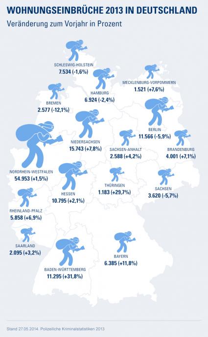 für 2013 auf insgesamt 148.638. Dies sind rund 407 Wohnungseinbrüche