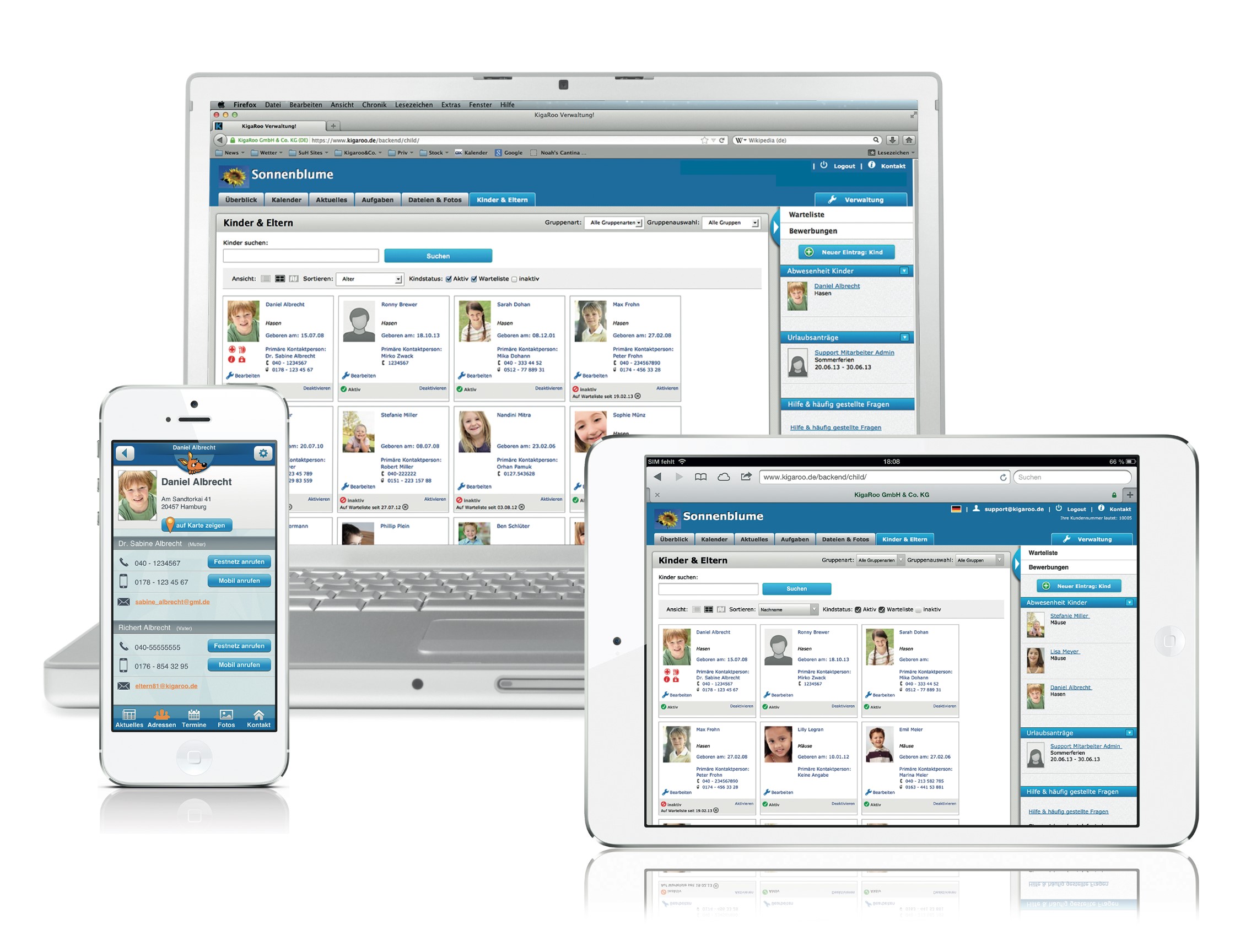 KigaRoo - "Die Kita-Software der neuen Generation", so der Slogan, ist wegen ihrer einfachen Vernetzungsfunktionen sowohl für kleine Elterninitiativen als auch für große kommunale, kirchliche oder private Einrichtungen und dezentral organisierte Träger und Familienzentren geeignet.