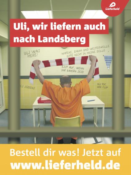 Hoeneß seine Zellenwand mit Sprüchen wie in der Lieferheld-Anzeige