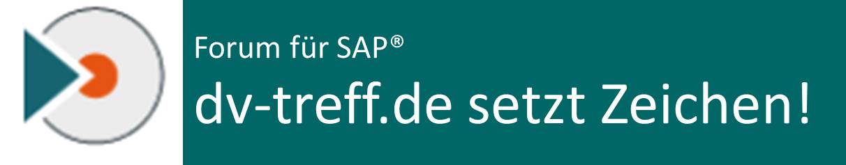 Den Überblick zu behalten fällt da schwer. Das FORUM für SAP (http://www.dv-treff.de) kann an dieser Stelle einen großen Beitrag zur Übersichtlichkeit der SAP-Themenwelt leisten.