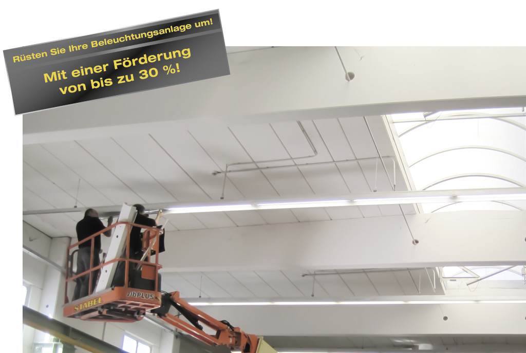 Es ist egal, ob Sie die Beleuchtung Ihrer Außenflächen, der Büros, der Lagerbereiche oder Ihrer Fertigungsstätte sanieren möchten, die Anschlussleistung der zu sanierenden Beleuchtungsanlage muss mindestens 500 Watt betragen. Generell sind für diese Projekte alle Installationsarbeiten, die neue Beleuchtungsanlage, Präsenz- und tageslichtabhängige Steuerung und die Planung förderfähig.