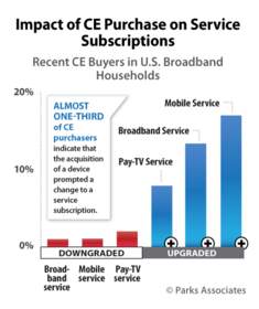 Analysen von Parks Associates zeigen, dass trotz der Bedenken aufgrund drahtlosen, vernetzten CE- und OTT-Videoangeboten die Pay-TV-Einsatzquoten weiterhin konstant sind. In den USA haben 90% der OTT-Abonnenten auch einen Pay-TV-Dienst abonniert. Zudem ist der Pay-TV-Einsatz unter vernetzten Besitzern von CE (Unterhaltungselektronik) höher als bei Haushalten ohne solche Geräte. 97% der US-Haushalte mit Breitbandanschluss mit drei oder mehr vernetzten CE-Geräten haben ein Abonnement.