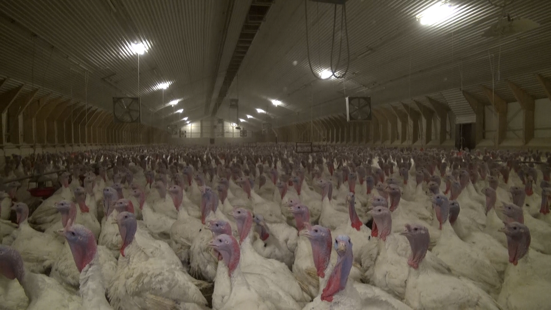 Der Tierfilmer Jan Peifer ist es gelungen heimlich in einem Putenstall in NRW zu filmen. Jan Peifer berichtet: "Die Tiere vegetieren dicht gedrängt in riesigen Hallen. Gegen Ende der Mast können sie sich kaum noch bewegen. Damit sie sich in der drangvollen Enge nicht gegenseitig blutig picken, wird ihnen schon in den ersten Lebenstagen die Spitze des Schnabels abgetrennt. Aus unserer Sicht verstößt diese Form der Tierhaltung eindeutig gegen das Tierschutzgesetz."