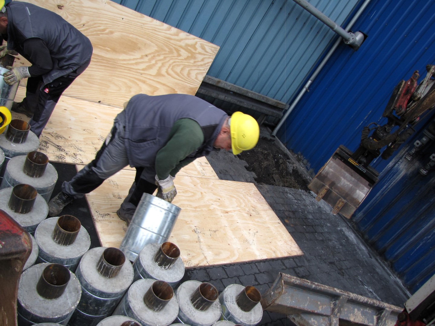 Insgesamt 26 hoch belastete Pfähle mit Durchmessern von 31,5 Zentimetern wurden für die Nachgründung benötigt. Zusätzlich waren drei temporäre Sicherungspfähle notwendig geworden, um zunächst die berechnete Position für einige der statisch tragenden Pfähle überhaupt erst erreichen zu können. Die Pfähle mussten zwischen 8,2 und 12,4 Meter in den Boden gepresst werden, bis sie ausreichend tragfähig im Untergrund verbleiben konnten. Im Zuge der Nachgründung musste die Siloanlage zudem bis zu 16 Zentimeter angehoben horizontiert werden, um sie wieder in die Waage zu bringen.