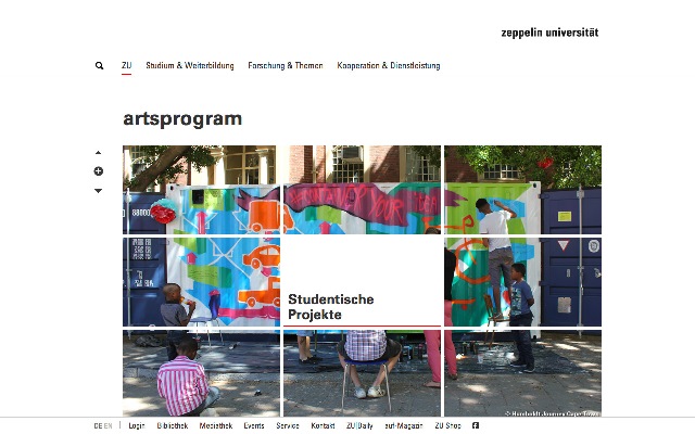 Da die Universität ein Ort des Entdeckens ist, wurden bei der Konzeption Portalseiten für die vier Navigationspunkte entwickelt, die den explorativen Umgang mit der Website verstärken. Mit Hilfe einer Akkordeonstruktur wird auf den Portalseiten ein Überblick über die wichtigsten Themen eines jeden Bereichs geboten. Sie sind somit der ideale Einstieg um die Vielseitigkeit der ZU wahrnehmen zu können. Dies betont auch Tim Göbel, Vizepräsident Universitätskommunikation und strategische Projekte an der ZU: "Wir wollen die Lebendigkeit der ZU in Forschung, Lehre, Weiterbildung und Projekten auch aus der Distanz heraus umfänglicher erlebbar machen. Unsere Absicht ist, Interessierten die Inhalte der ZU noch besser zugänglich zu machen - von Publikationen bis hin zu aktuellen Podcasts und Videos. Und wir wollen damit unsere Haltung als Universität in der Gesellschaft verdeutlichen, die ihr Wissen unkompliziert nutzbar macht." Aus dem gleichen Motiv heraus wurden sogenannte "Idents" für die Zeppelin Universität entwickelt. Diese kleinen Imagefilme mit künstlerischem Charakter zeigen die unterschiedlichen Facetten des studentischen Lebens und sollen zudem das Interesse der User für andere Themenbereiche wecken.