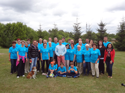 Im Bild ein kleiner Teil der Mitglieder des KSG Fläming-Lübars, Vereinsvorsitzender Herr Hierse (2. Mann von rechts), vorn im Bild Herr Peer Schmidt (mit Firmenhund Toni) von der Firma townzaun Zaunsysteme, in der Mitte Herr Impe von der Mecklenburgischen Versicherung.