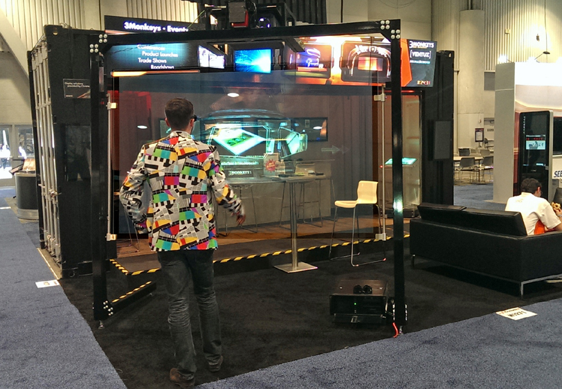 Ferner eignet sich die 100" HoloScreen auch perfekt für stereoskopische Anwendung, da 3D-Inhalte durch die völlige Transparenz des Mediums frei im Raum schweben, wodurch ein futuristisch anmutender und nachhaltig wirkender Effekt gegeben ist.