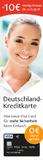 Neukunden der Deutschland Kreditkarte erhalten ein Startguthaben in Höhe von 10 Euro auf ihr Kreditkartenkonto gutgeschrieben, wenn Sie die Deutschland Kreditkarte im Zeitraum vom 1. Juli 2014 bis 31. August 2014 bestellen und anschließend die Karte bis zum 21.09.2014 erstmalig zum Bezahlen verwenden.