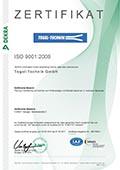 TEGEL-TECHNIK ist zertifiziert nach DIN EN ISO 9001:2008
