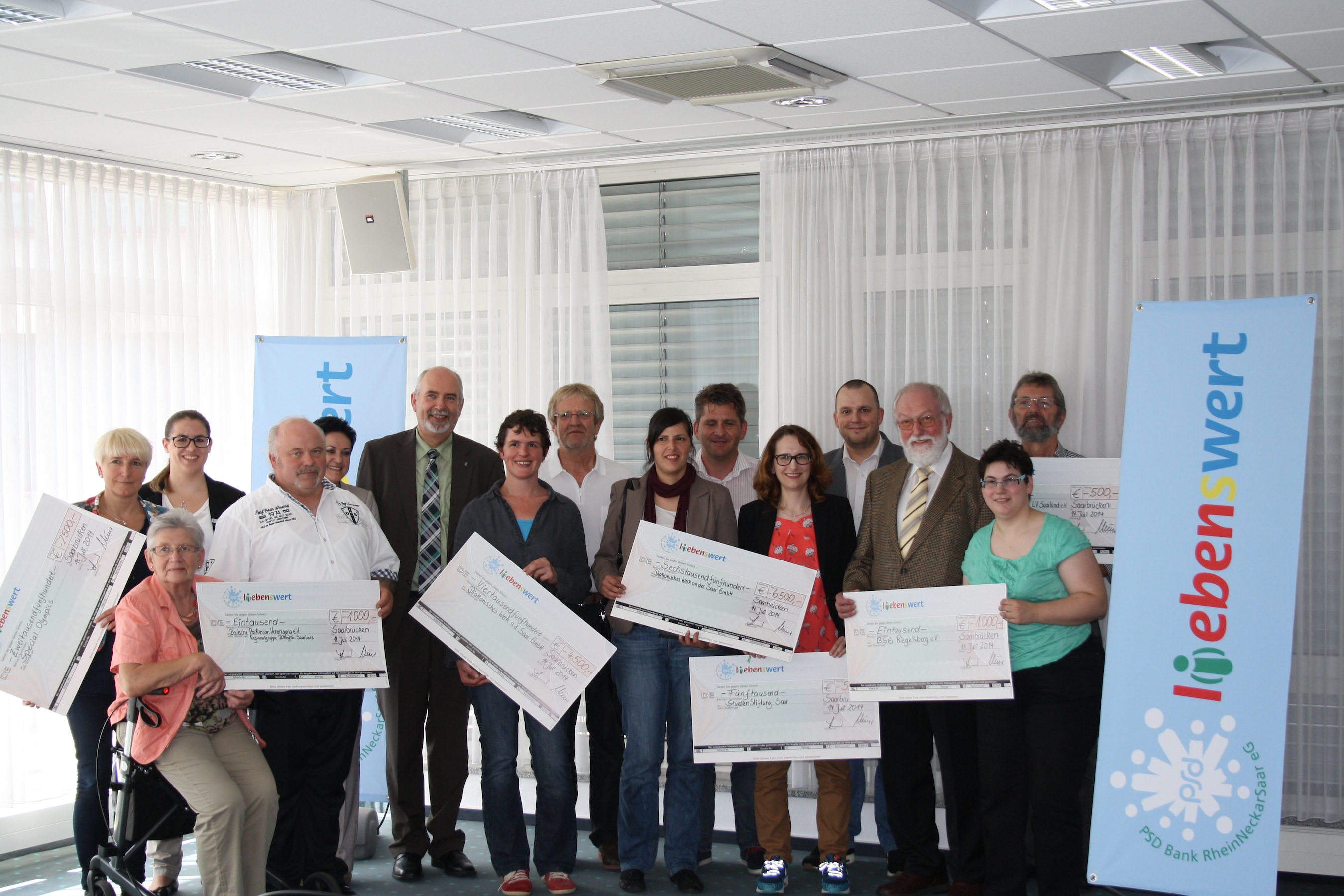 Die Scheckübergabe fand am 14. Juli 2014 in der Saarbrücker Geschäftsstelle der PSD Bank RheinNeckarSaar eG statt