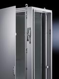 Bei der Entwicklung der neuen Trennschalterhaube hat Rittal besonderen Wert auf eine einfache Montage gelegt. Wie bei vielen Montagevorgängen an dem TS 8 Schaltschranksystem kann auch die Trennschalterhaube in 125 mm Breite von einer Person wahlweise links oder rechts am Schrank montiert werden. Diese lässt sich zunächst einhängen und anschließend leicht verschrauben, ohne dass der Monteur sie dabei festhalten muss. Dank der seitlich offenen Trennschalterhaube ist ein besserer Zugang und damit eine einfache Montage und Justage der Betätigungsmechanik gewährleistet. Die Standard-Seitenwand lässt sich an der seitlichen Öffnung der Trennschalterhaube mit automatischem Potentialausgleich montieren.
