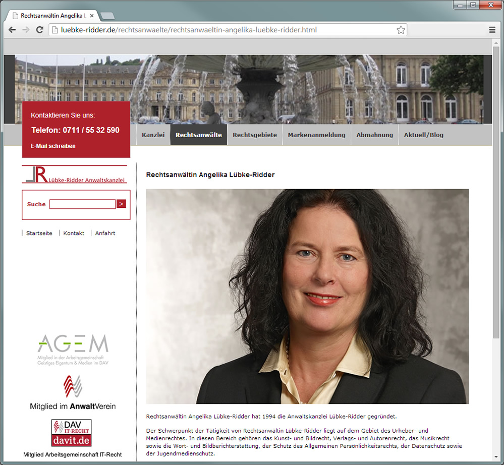 Launch neue Homepage der Anwaltskanzlei Lübke-Ridder, Rechtsanwälte Stuttgart und Frankfurt