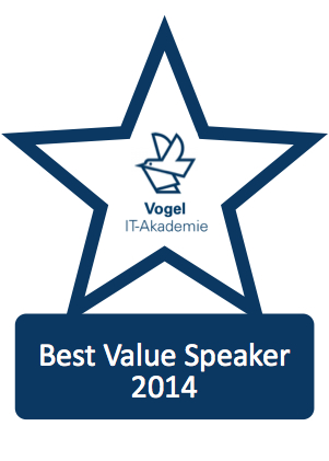 Bernd Hoeck erhält Auszeichnung als Best Value Speaker der Vogel IT Akademie. Storybuilding-Ansatz macht auch komplexe IT-Sachverhalte verständlich.