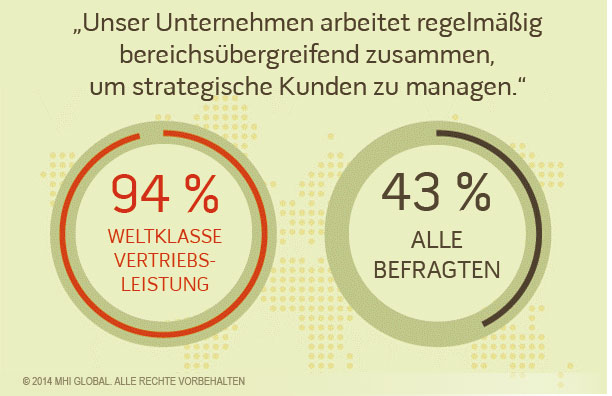 Im Jahr 2013 fand die Untersuchung drei Merkmale von Weltklasse-Vertriebsorganisationen heraus, die jeweils einer kulturellen Komponente entsprechen, welche das Verhalten und die Einstellungen des Unternehmens steuern: "Der Kunde - Dreh- und Angelpunkt", "die ganzheitliche Kultur" und "der bewusste Erfolg" sind die Eckpfeiler einer leistungsorientierten Unternehmenskultur im Vertrieb. Aufbauend auf diese Unternehmensmerkmale hat die Analyse der Daten von 2014 drei entscheidende Kategorien von Verhaltensweisen im Vertrieb ergeben, die eine Weltklasse-Vertriebsleistung ausmachen. Dabei legen die neusten Studien-Ergebnisse diese drei Schlüssel-Verhaltensweisen offen: