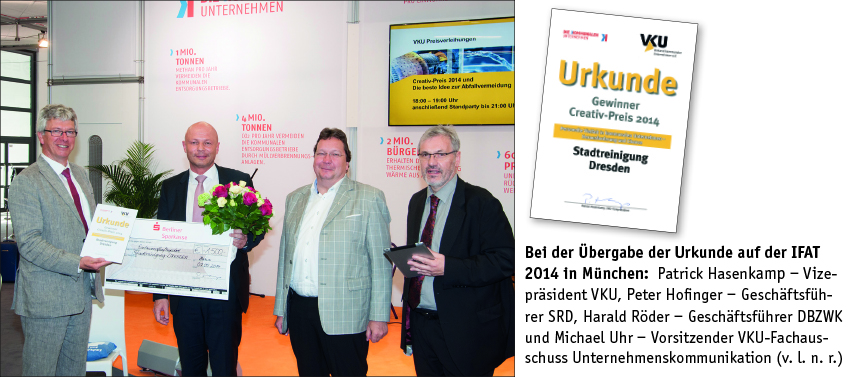 "Die Stadtreinigung Dresden GmbH (SRD) gewinnt Creativ-Preis 2014"