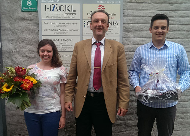 Reinhard Häckl, Geschäftsführer von Häckl und Partner, gratuliert seinen Azubis: Johanna Zichner von der Steuerberatungskammer als beste Auszubildende geehrt.