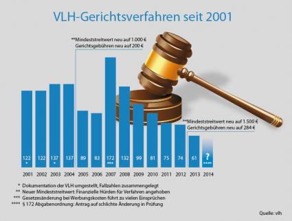 Die allgemeinen Zahlen zu Gerichtsverfahren der VLH sieht