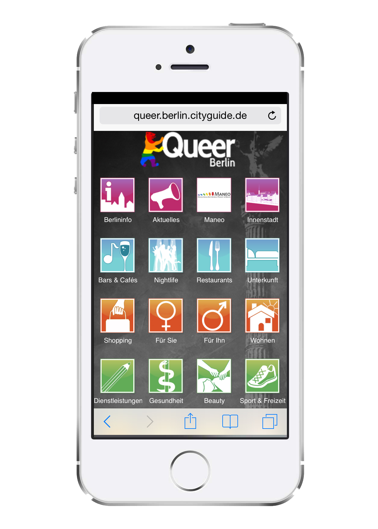 In der Queer Berlin-App, die von der CITYGUIDE AG herausgegeben wird, finden Bewohner und Gäste der Stadt sowohl allgemeine Informationen über die deutsche Hauptstadt, als auch Beratungs- und Informationsangebote speziell für die Zielgruppe.