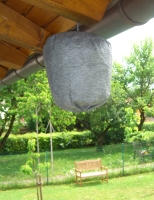 (IINews) - Eckartshausen, 29.08.2014 ? Im Laufe des Sommers wächst ein Wespenvolk auf 3.000 bis 4.000 Exemplare an. Besonders während der Obstreife rauben uns Wespen und Hornissen nur all zu leicht die Ruhe auf ihrer Futtersuche im Garten, auf Balkon und Terrasse. Eine einfache und zugleich geniale Lösung bietet der "Wespenschreck". Diese Wespennestattrappe täuscht anfliegenden Wespen und Hornissen ein fremdes Nest vor und veranlasst sie so, einen gewissen Abstand zu halten. Die Reaktion beruht auf dem aus der Biopsychologie bekannten Schlüsselreiz-Konzept. Hergestellt aus lebensmittelfreundlichem Polypropylengewebe, ist dieser Wespenschreck wetterbeständig und lebensmittelfreundlich. In Form und Farbe ähnelt die Attrappe einem Wespennest.