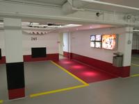 Die Wände und Decken wurden mit einer speziellen, höher reflektierenden OS 4 Beschichtung ausgeführt. Die Tiefgarage erfuhr durch diese Maßnahme eine deutlich spürbare Aufhellung, die den freundlichen Charakter der neugestalteten Flächen unterstreicht.