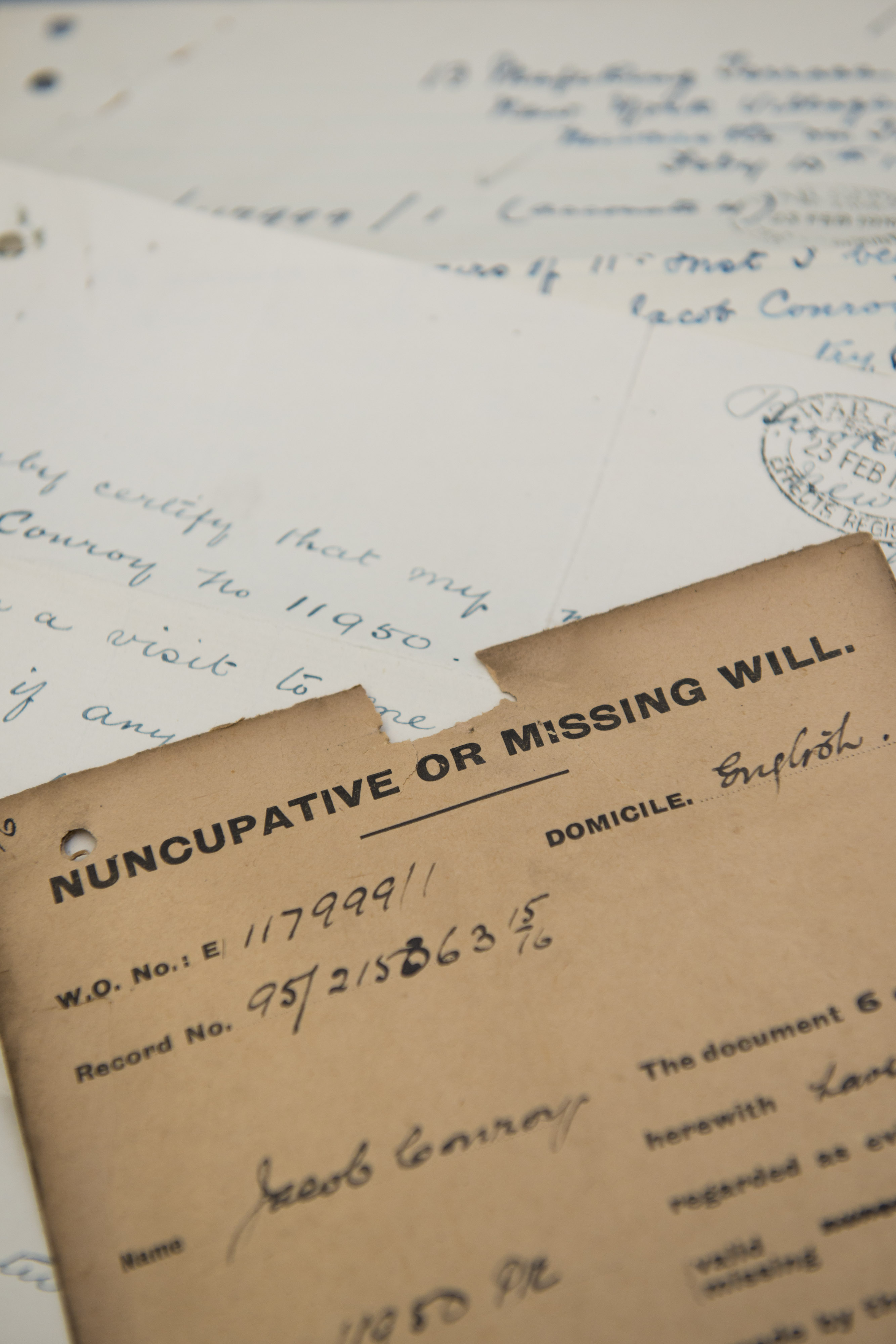 Dass die Soldaten, die weit weg von zu Hause in den Schützengräben um ihr Leben kämpften, das gleiche Schicksal teilten, ist auch aus den Originaltestamenten ersichtlich, welche die britischen Soldaten immer in kleinen Taschen an ihrer Uniform trugen. Ein Soldat, der nach acht Monaten an der Front in Flandern am 5. Mai 1918 fiel, ist Private William Cowell. Er hielt seinen letzten Willen in nur einem einzigen Satz fest: Im Fall seines Todes sollte sein sämtliches Vermögen an seine Mutter übergehen. Die britischen Soldaten Sidney Lowe (Alter unbekannt), Joseph Wallis Shaw (22 Jahre) Joseph Hougton (28) und Cecil Christopher Iley (28) hinterließen ihre gesamten "weltlichen Güter" ebenfalls an ihre Mütter. Ein junger niederländischer Soldat namens Josef Wijns (22 Jahre) wurde bei Ypern so schwer verwundet, dass seinen Eltern ein besonderes Passdokument ausgestellt wurde, damit er seine Mutter ein letztes Mal sehen konnte.